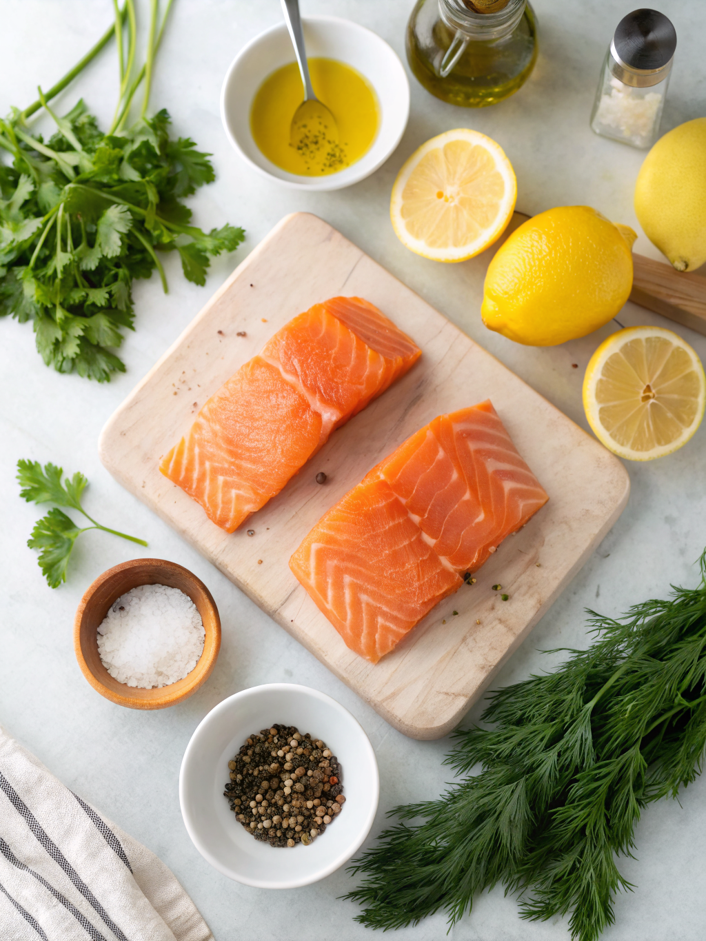- Four 6-ounce salmon fillets, skin on or off: Wild-caught salmon often has a richer flavor profile, but farm-raised is also excellent.